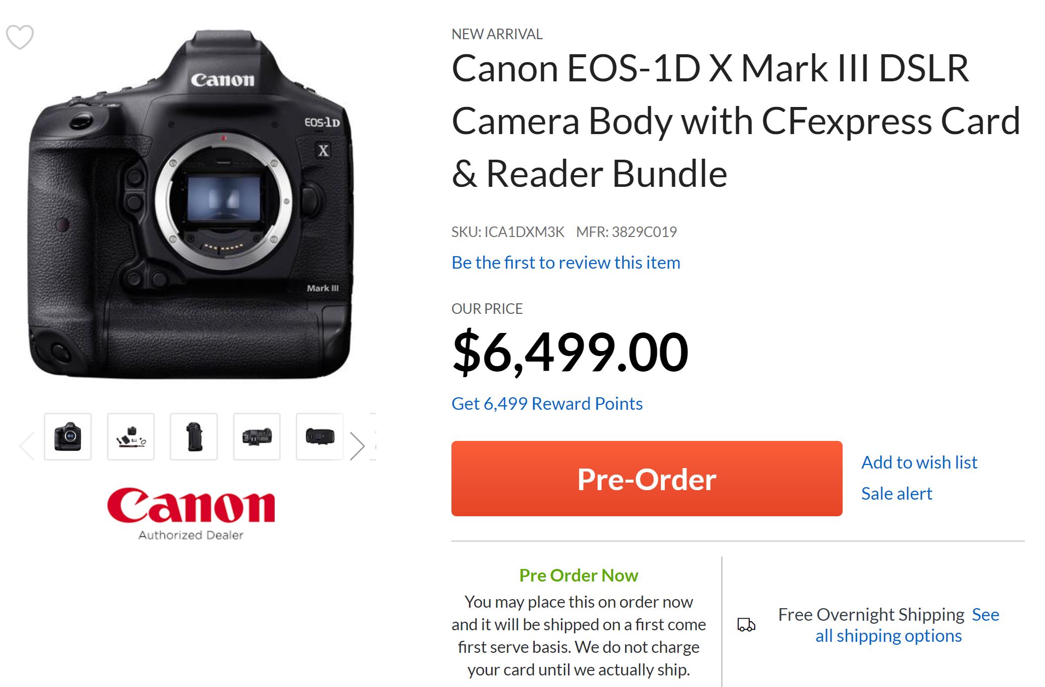 The Canon EOS-1D X Mark III now officially announced. The US price for EOS-1D X Mark III body is $6,499, now available for pre-order at B&H Photo Video/Adorama/Amazon. Release date on February 13th, 2020.