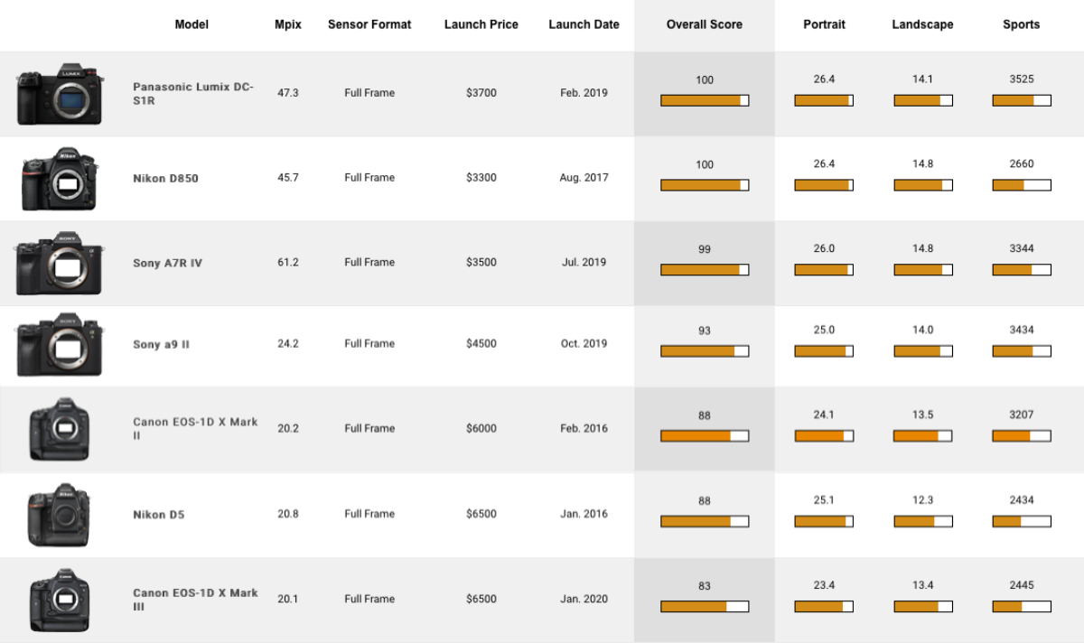 Sports journalism is a highly competitive field and requires a camera that can keep pace with the action unfolding in front of the lens. The Canon EOS-1D X Mark III has been designed with that one goal in mind. Although we at DXOMARK test only sensor performance and no other features, at face value it’s an incredibly fast DSLR with not only blazing AF speed, incredible continuous shooting rates and a prodigious buffer, but also an equally impressive sensor. Admittedly, it’s not quite at the cutting edge in our metrics for sensor performance, but there’s far more to it than that.