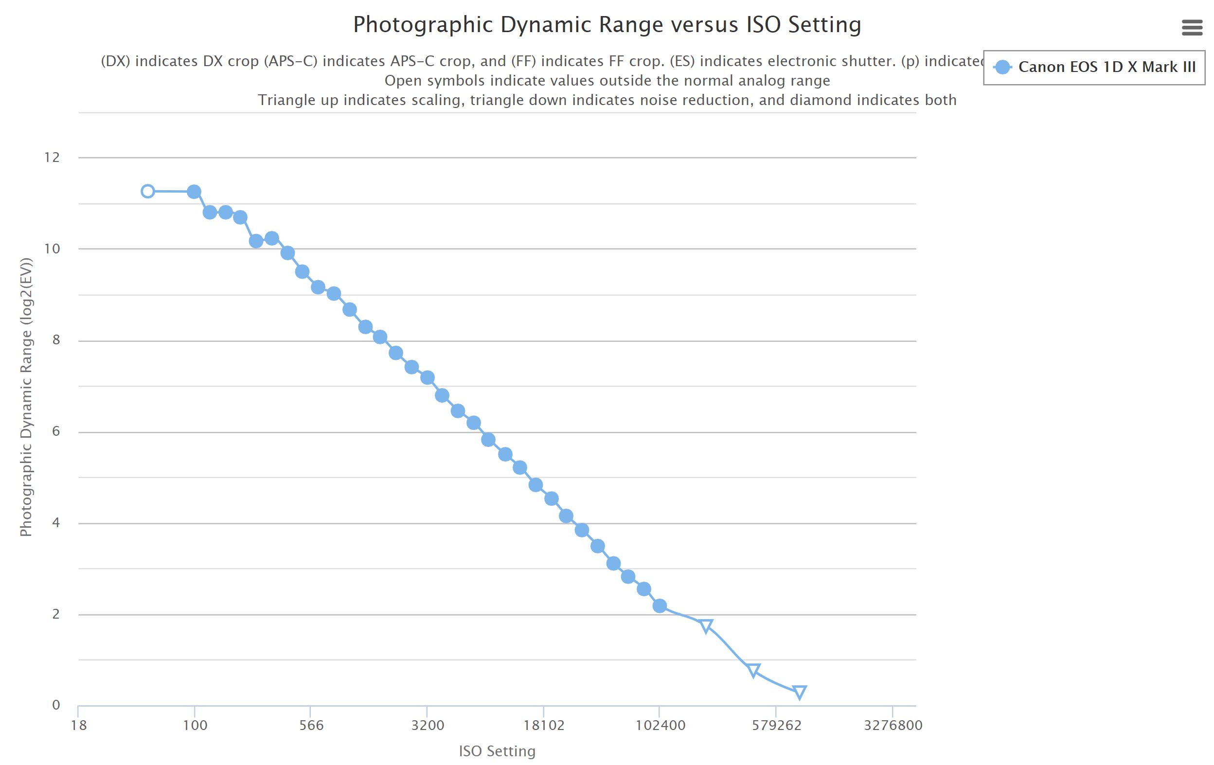Photonstophotos has just tested the dynamic range of new released Canon EOS-1D X Mark III (B&H Photo/Adorama/Amazon). According to test result, Canon EOS-1D X Mark III has class leading dynamic range, similar to Sony a9 II, EOS 1D X Mark II and Nikon D5.