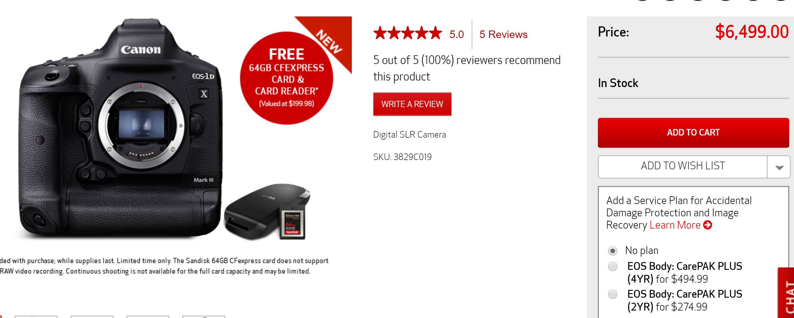 Canon USA direct store now has Canon EOS-1D X Mark III back in stock and shipping. Currently, Canon EOS-1D X Mark III is out of stock everywhere.