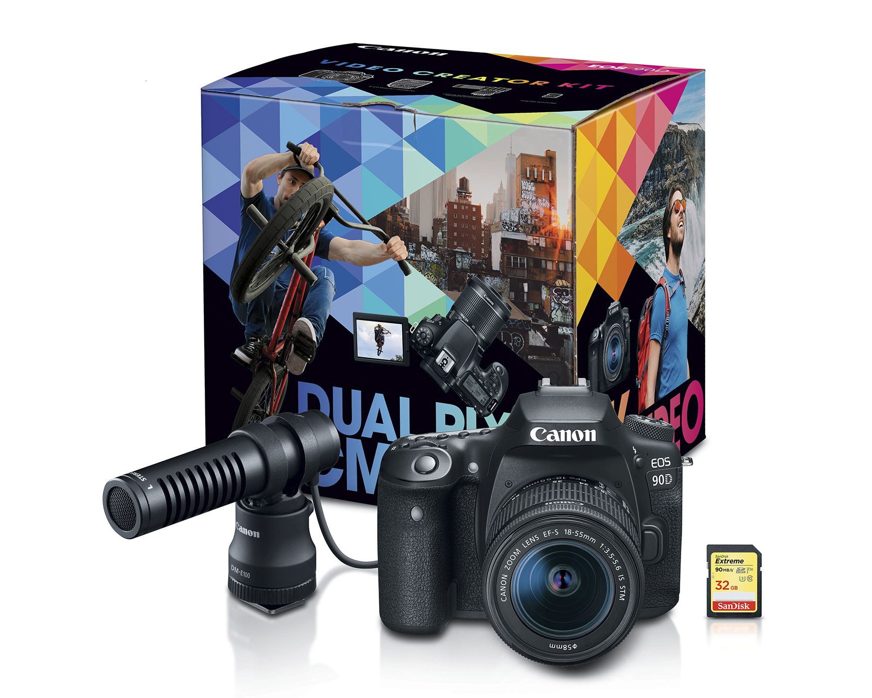 – Kit Includes: EOS 90D, EF-S 18-55mm STM lens, Stereo Microphone DM-E100, 32GB SD Card