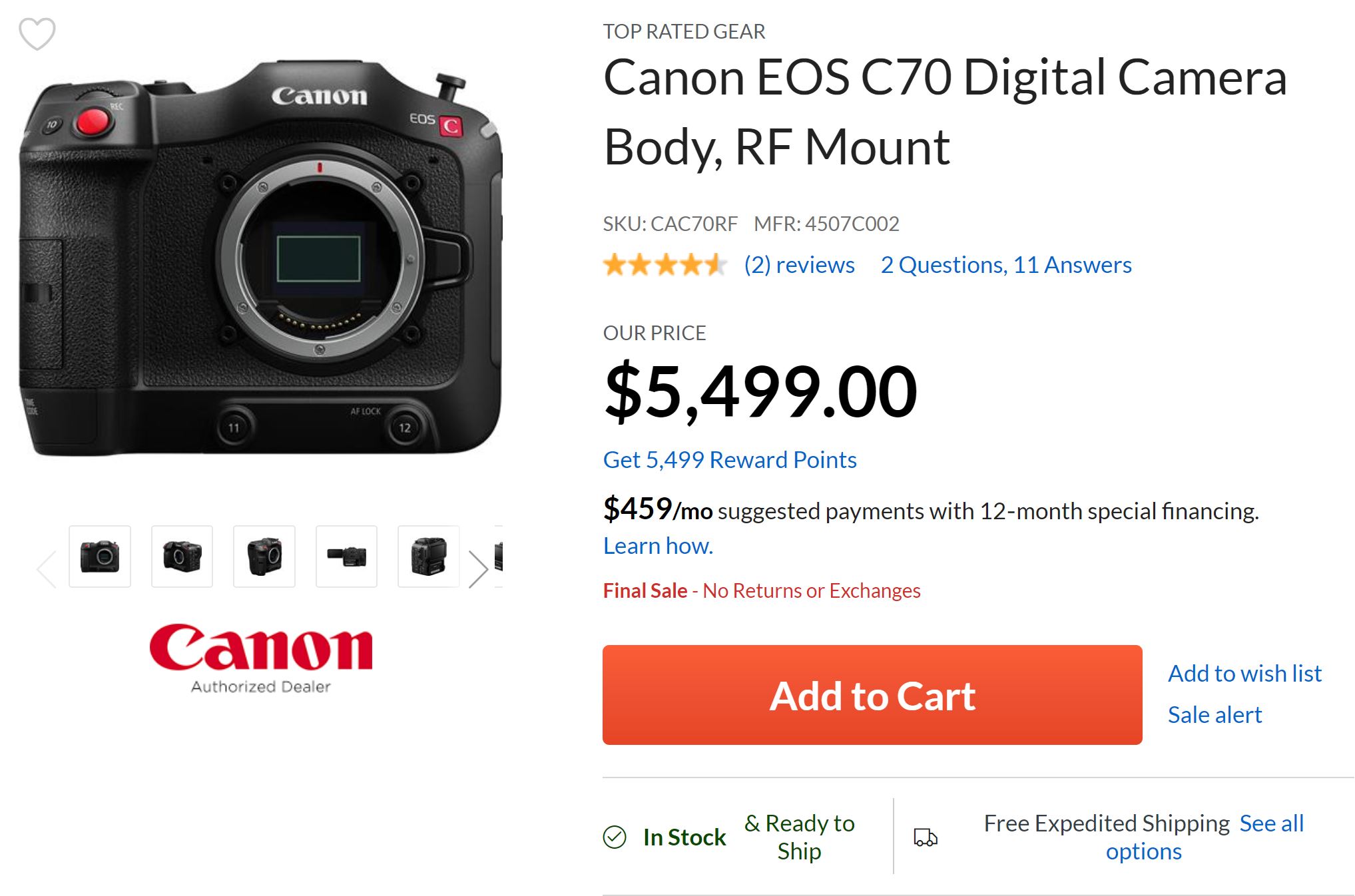 The Canon EOS C70 now finally in stock and shipping at Adorama Camera, order now before sold out again. You can also pre-order at B&H Photo Video.