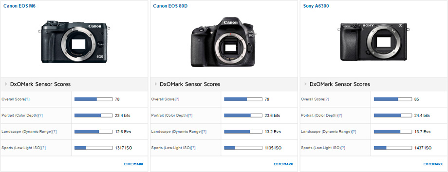 DxOMark has tested the new Canon EOS M6’s image sensor. EOS M6 is the successor of EOS M3, also feature dual pixel AF as in EOS M5. The US price for Canon EOS M6 starts at $779, you can find bundle deals of EOS M6 here. Take a look at DxOMark result of Canon EOS M6 below: