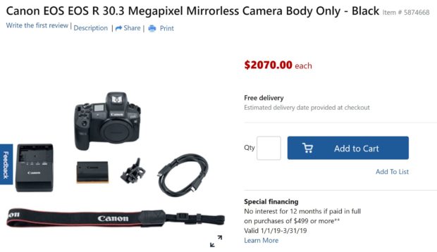 - Canon EOS R Body – $2,070.00 – at Office Depot