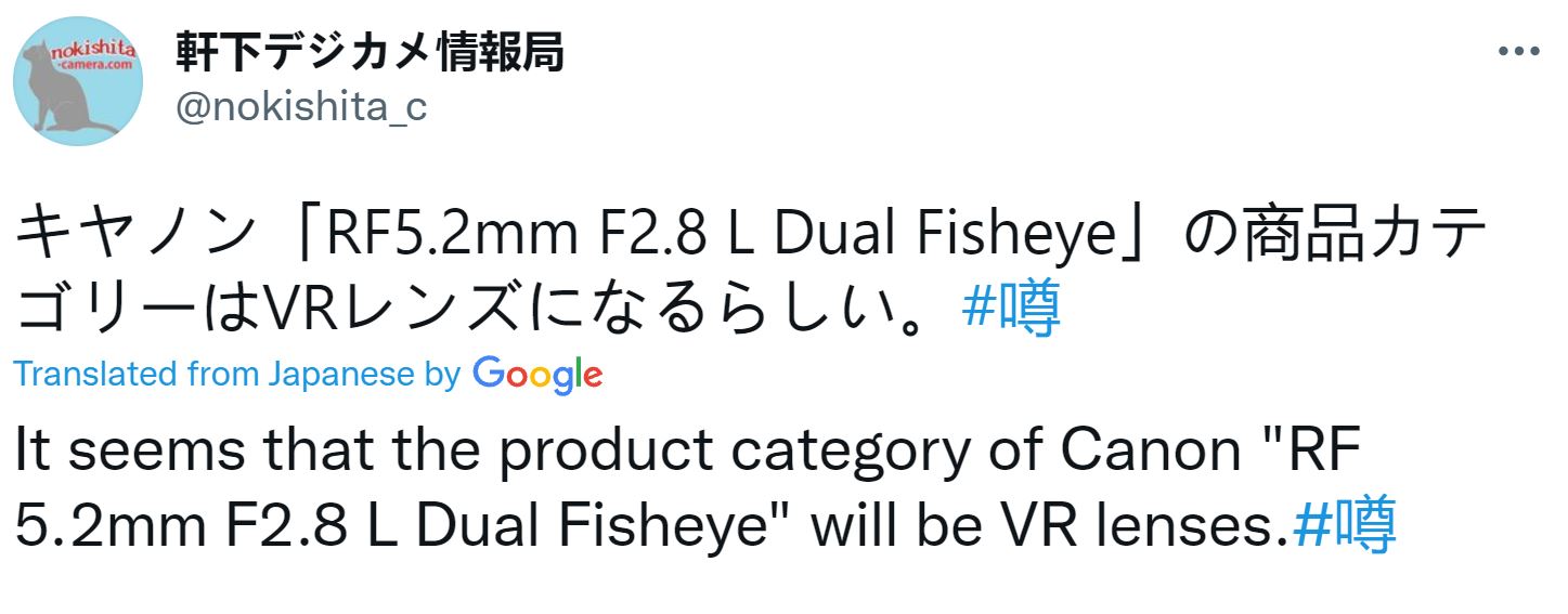 The previous rumored Canon RF 5.2mm f/2.8L lens is actually a fisheye dual-lens for Virtual Reality. The official name is Canon RF 5.2mm f/2.8L Dual Fisheye Lens. The official announcement is expected in next few weeks. Stay tuned for more info.