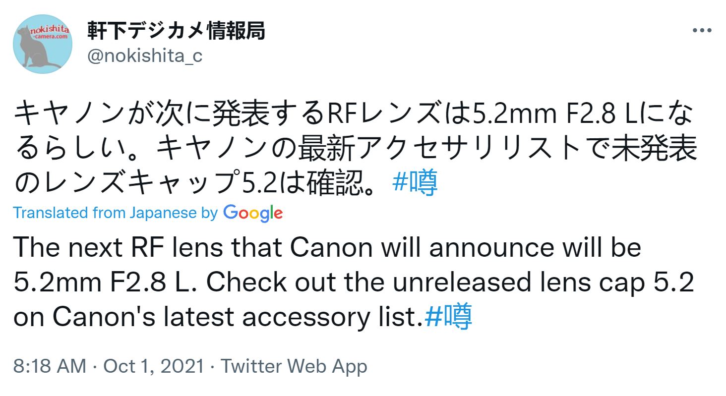 Canon RF 5.2mm f/2.8L USM Lens to be Announced Next ?