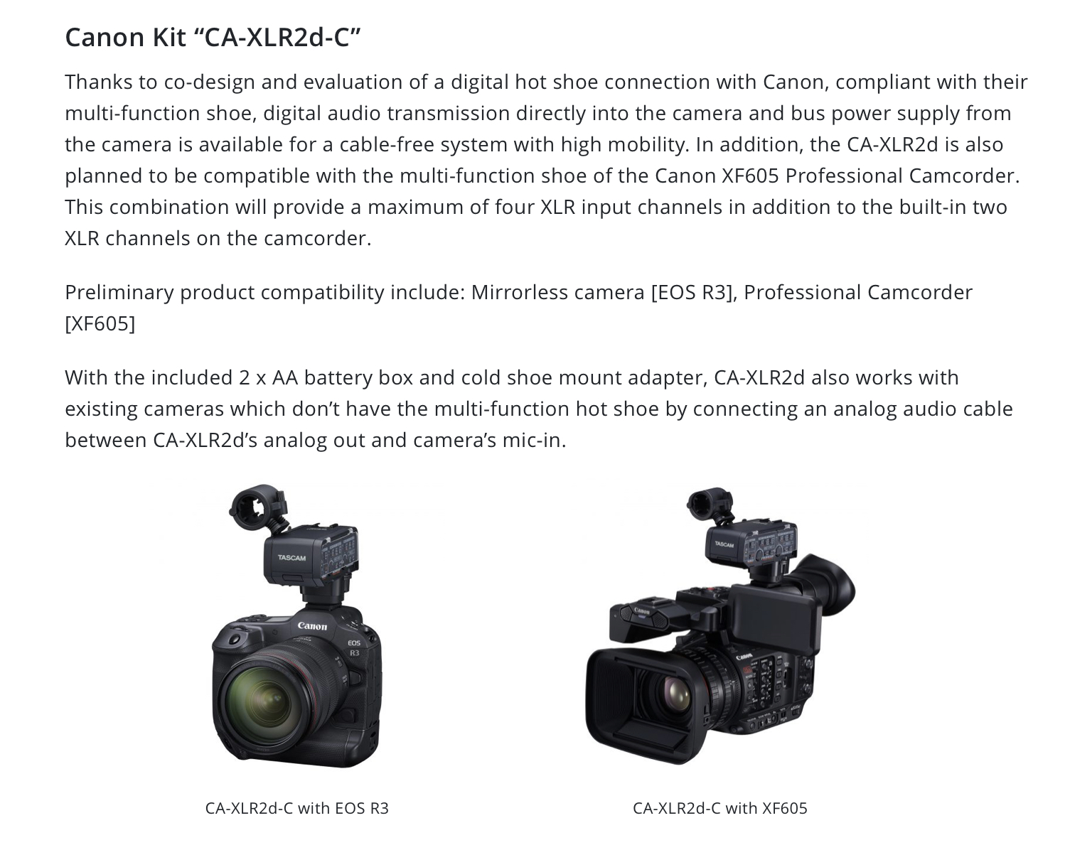 Recently, Canon has announced the new “Accessory Shoe” for the Canon EOS R3 and Canon XF605 4K professional camcorder. And TEAC announced their first third-party accessory for this new accessory shoe which will add XLR microphone capabilities to the EOS R3 and XF605.