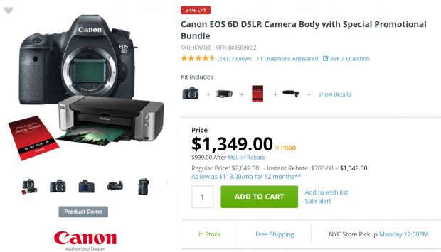 Adorama Camera currently has a hot deal on Canon EOS 6D bundles for $999 after $350 mail in rebate.