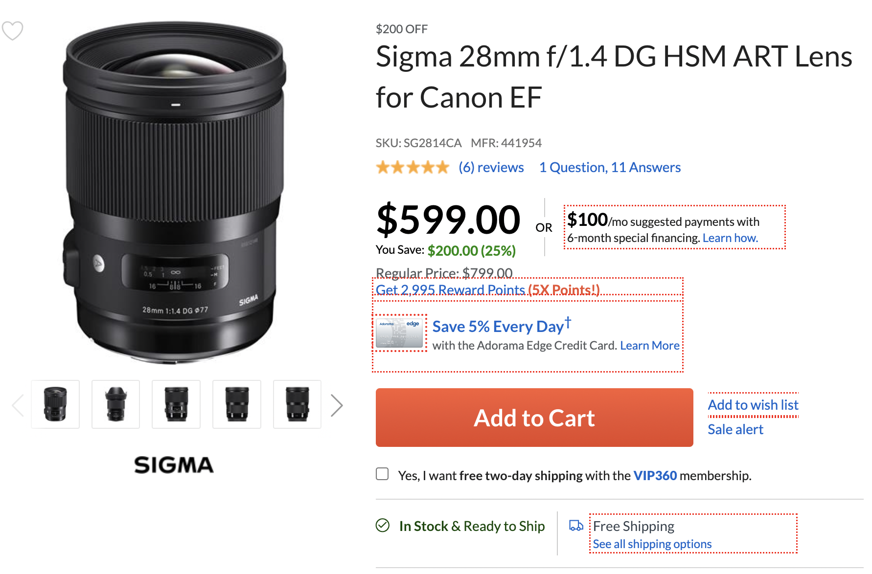 Sigma USA authorized dealer Adorama currently has Sigma 28mm f/1.4 DG HSM Art lens for Canon EF mount for $599, $200 off than regular US price, currently lowest price online ever.