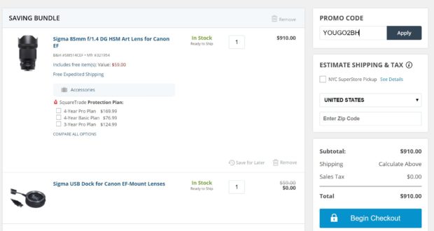 - Sigma Art 85mm f/1.4 DG HSM lens for $910 after use promo code “YOUGO2BH” at checkout, coming with free USB Dock