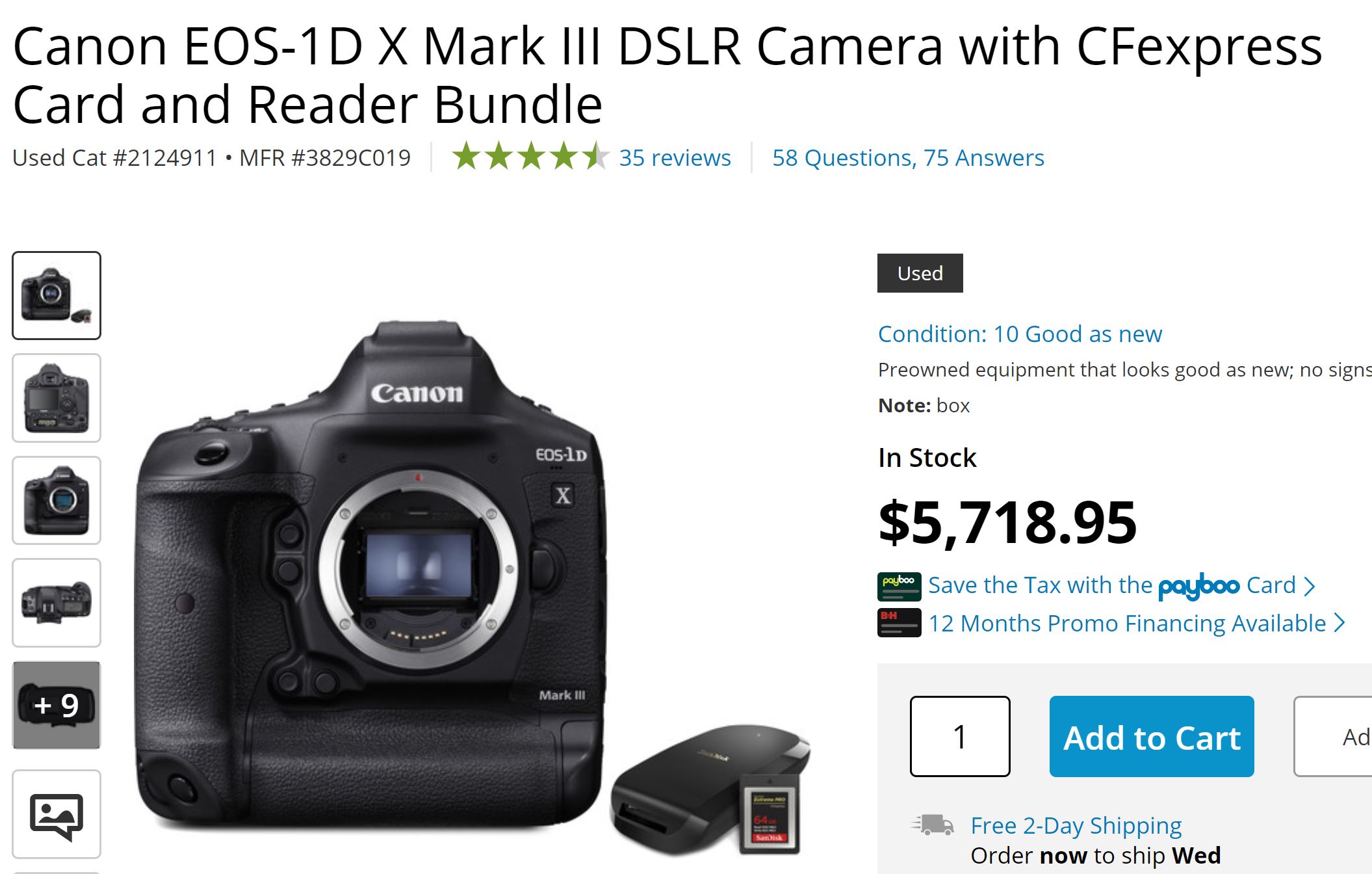 B&H Photo Video currently has 10 rated used Canon EOS-1D X Mark III with CFexpress card & reader bundle for $5,718.95. The B&H’s 10 rated condition is “Preowned equipment that looks good as new; no signs of wear”. Save $780 off over new item. Order ASAP before sold out.