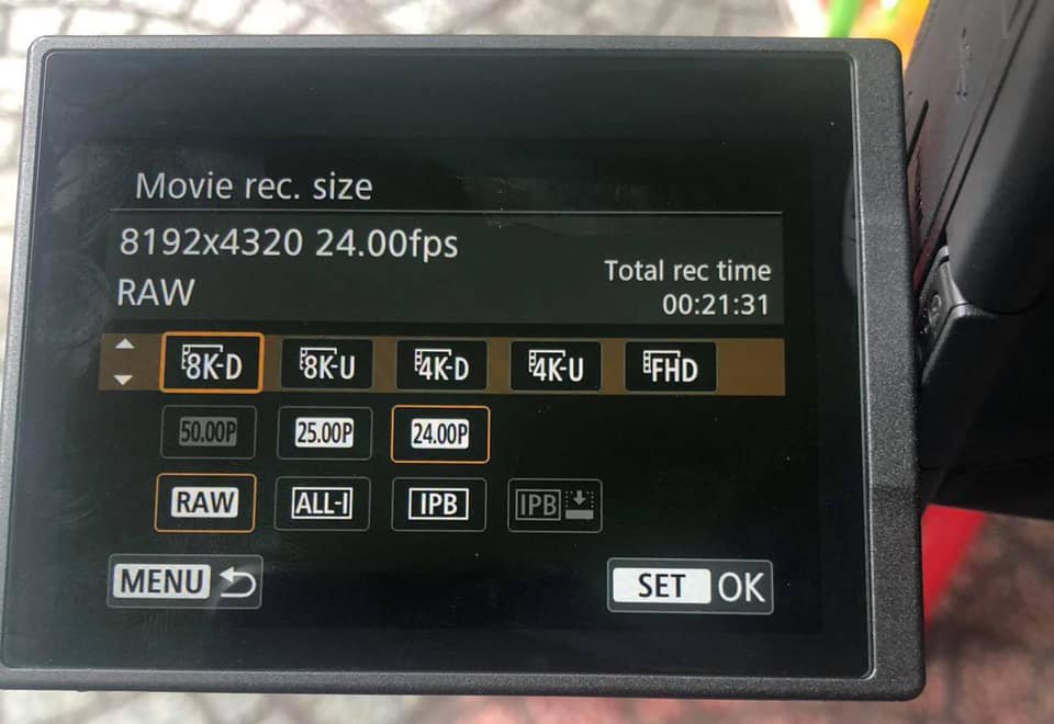 The 8K-U option is for recording in 16:9 with an 8K resolution of 7680 × 4320. This is the 8K answer to Ultra HD 4K at 3840 x 2160 which also has the “U” tag in Canon’s menus for 4K recording.