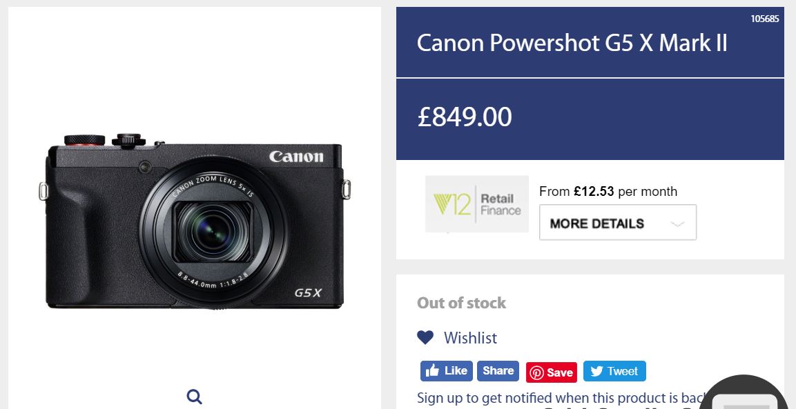 UK website Wilkinson has leaked the product pages of Canon PowerShot G5 X Mark II and Canon RF 24-240mm f/4-6.3 IS USM lens today. The official announcement will be on tonight midnight.