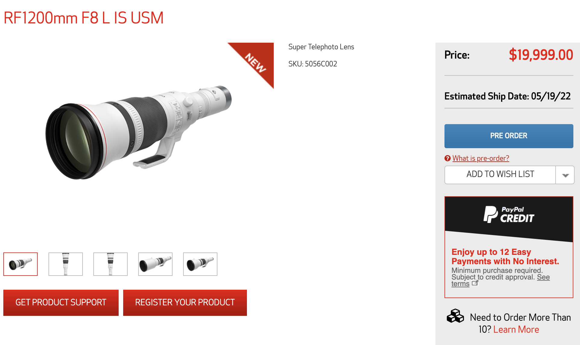 RF 1200mm f/8L IS USM lens Pre-order links:
