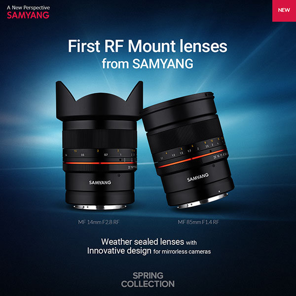 Samyang has officially announced two new RF mount lenses for Canon EOS R full frame mirrorless cameras: Samyang MF 14mm f/2.8 RF Lens and Samyang MF 85mm f/1.4 RF Lens. The US price for both lenses is not available yet, you can check pre-order options at B&H Photo Video/Adorama. According to Samyang, both lenses will be released soon.