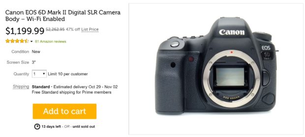 - Canon EOS 6D Mark II Body – $1,199.99 – at Woot ! (1-Year Canon USA warranty)