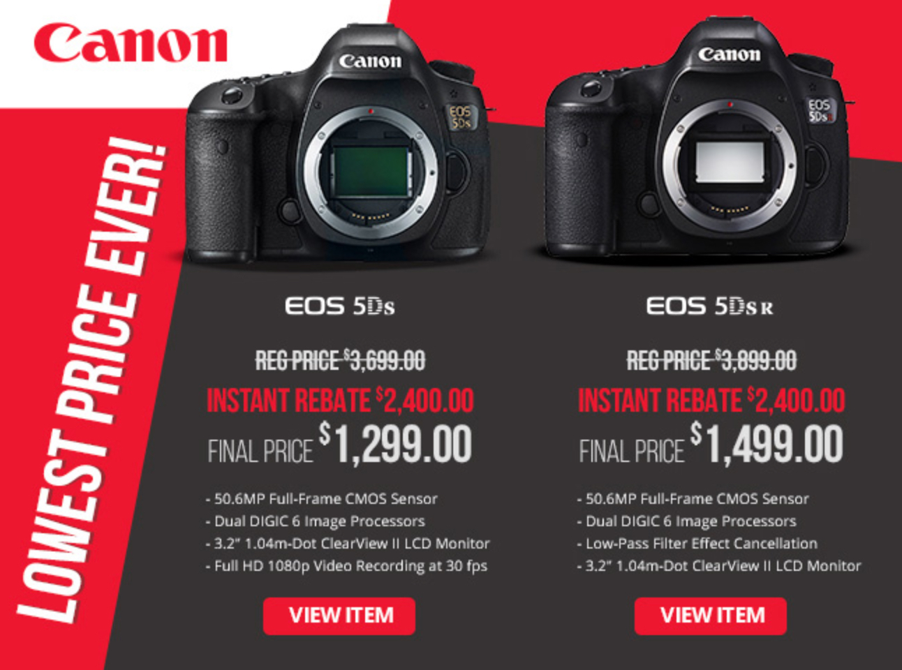 Super Hot Price Drop – Canon EOS 5DS now $1,299, EOS 5DS R now $1,499 !