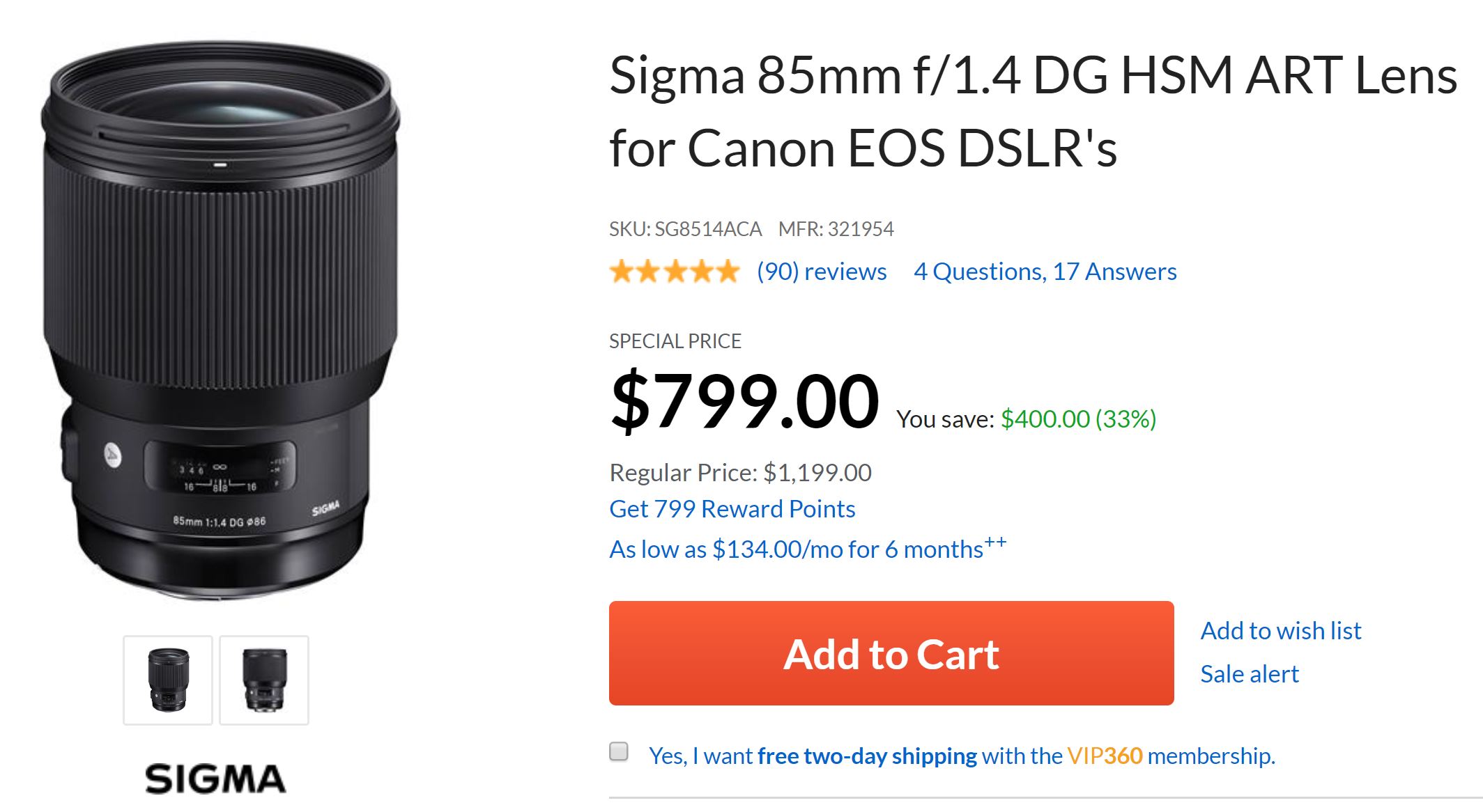 - Sigma 85mm f/1.4 DG HSM Art Lens – $799 – at Adorama.com