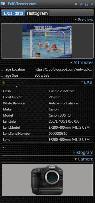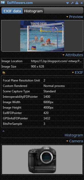 Just after last post rumored Canon EOS R3 may have a 24MP full frame sensor, a user at CR forum has just posted the EXIF data of Canon EOS R3 at Tokyo 2020 Olympics games. The EXIF data shows an image size of 6000×4000 pixels, which puts EOS R3 at 24mp.