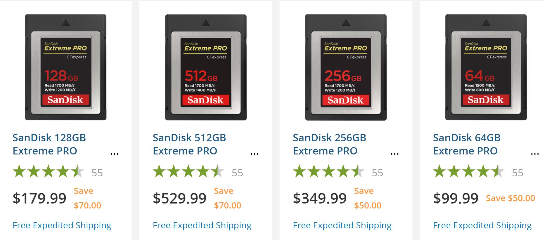 SanDisk currently has their CFexpress cards for sale, you can get up to $70 instant savings on SanDisk Extreme PRO CFexpress cards at B&H Photo Video/Adorama.